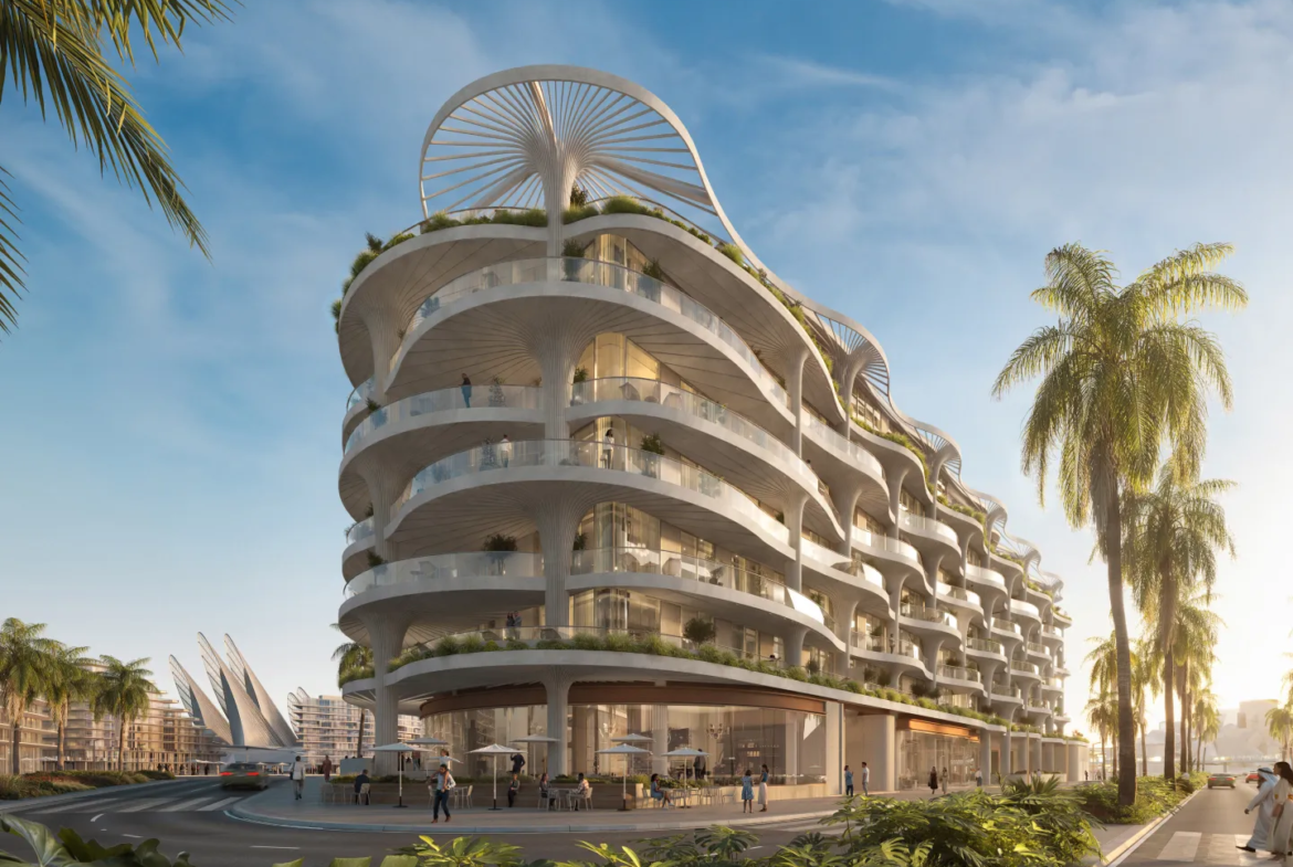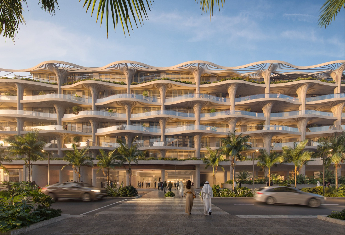 Mamsha Palm at Saadiyat Island is an architectural marvel where nature and luxury converge with exclusive apartments and sky villas, crafted meticulously by Aldar Properties. Drawing inspiration from the organic beauty of the palm tree, this exclusive façade is designed by world-famous architect Koichi Takada, where the design incorporates fluid rooflines, tree-like columns, and Biophilic elements that mirror the island’s lush landscape. Every inch of this exclusive development, from its low-rise form to its expansive, light-filled interiors, exudes sophistication. Takada’s vision for this project creates a seamless blend of modern aesthetics with nature’s tranquillity, offering residents a unique sanctuary that feels both timeless and harmoniously integrated within its surrounding.
